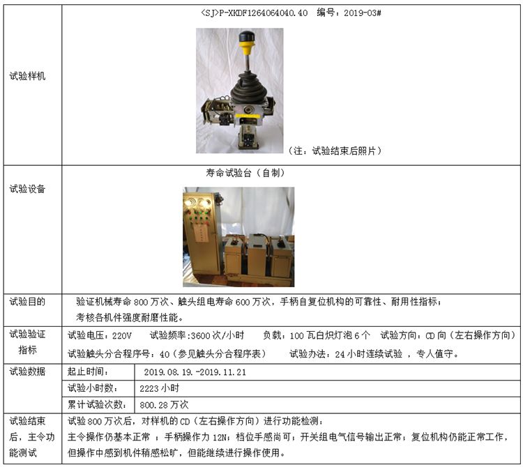 2019期間,為滿足港口門座起重機對主令控制器輸出模擬信號要求,在定型機型基礎上研制出帶電位器機型,并對樣機進行了200萬次臺架試驗,試驗很成功。產品同時投放市場,受到港機客戶的高度肯定。