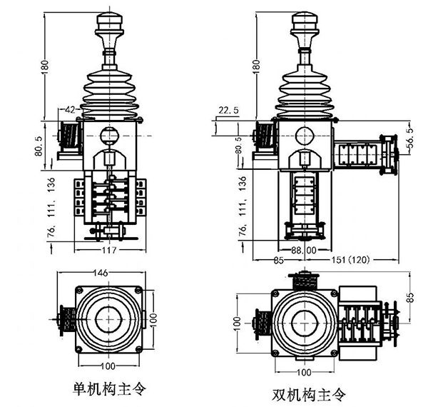 雙機構控制器,操作兩個凸輪軸開關,手柄分為聯動操作,用AK表示和“十”字形操作,用KK表示。