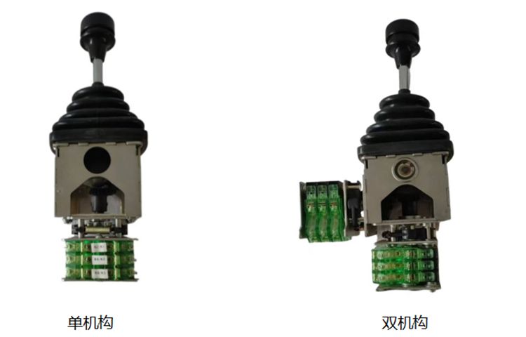 主令手柄有兩種功能形式,一種手柄自復(fù)位功能,如QT6S配置的是<SJ>P-XKDF主令控制器;另一種是有檔位手感、檔位保持型,如QT6S聯(lián)動(dòng)臺(tái)配置的QT18主令控制器。